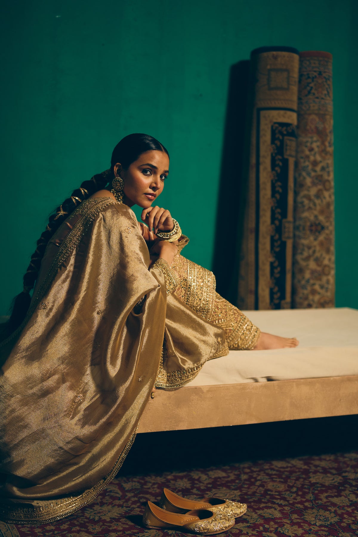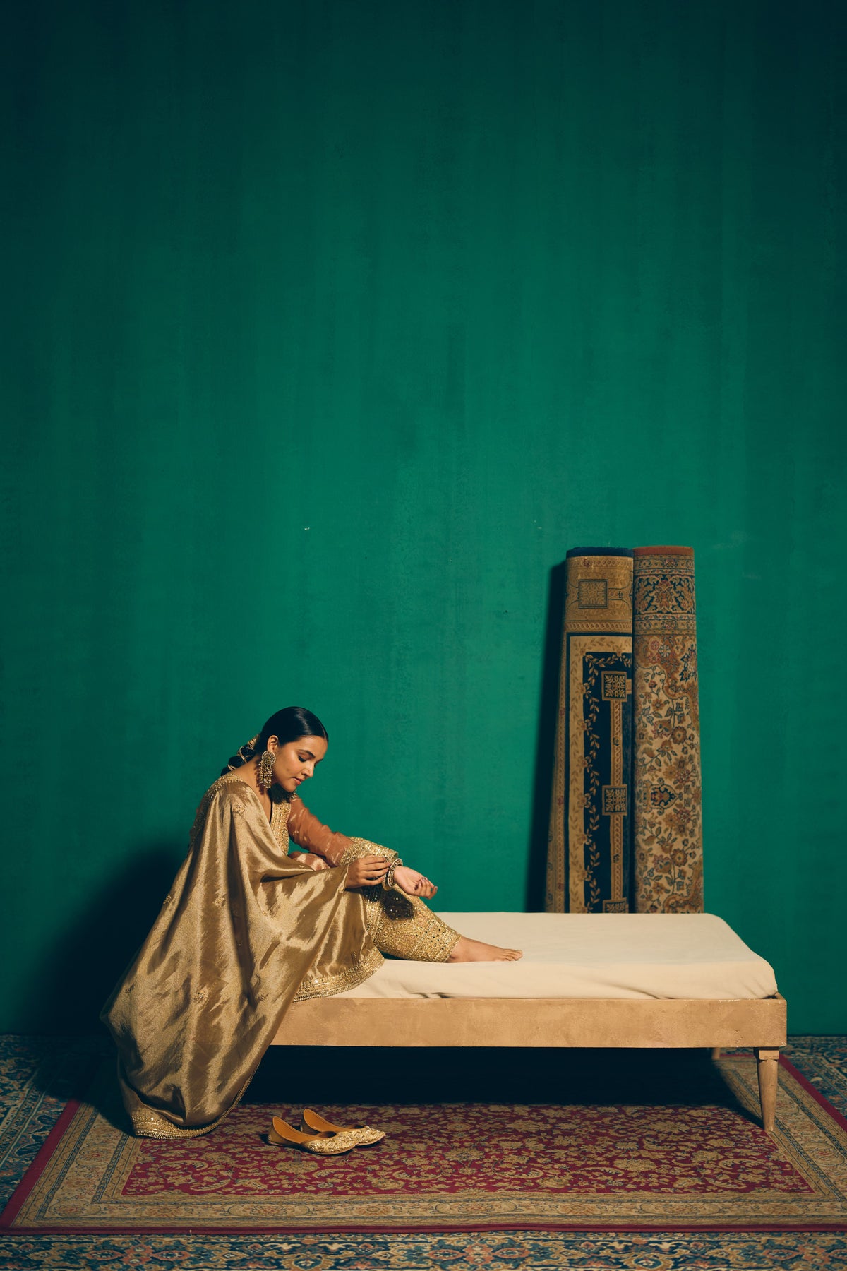 Refined kurta set crafted in a rich silk blend, detailed with intricate zari and thread work, paired with matching pants and dupatta, exuding understated luxury, festive charm, and classic Indian elegance.